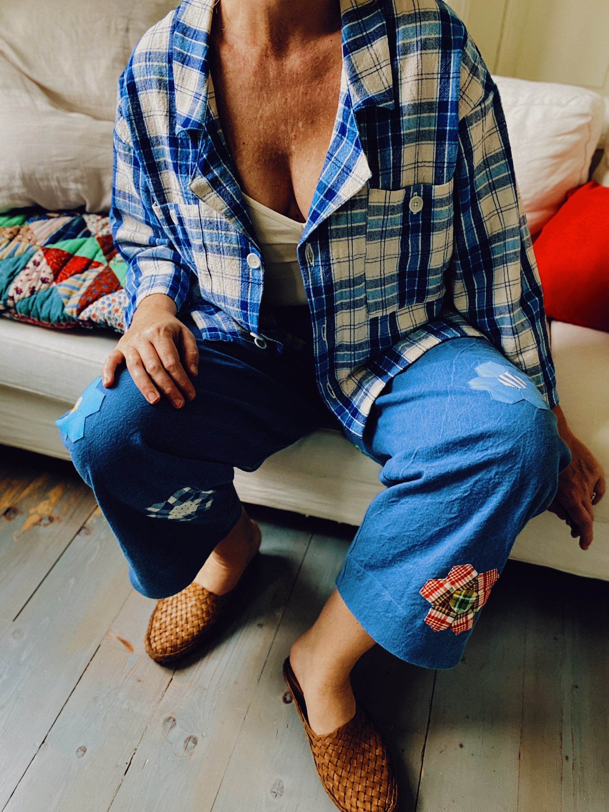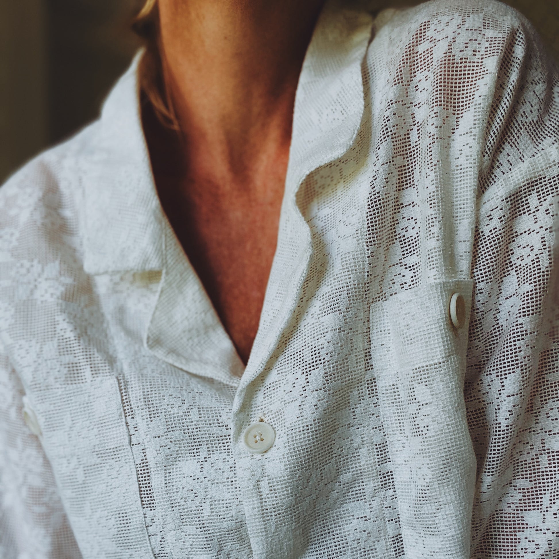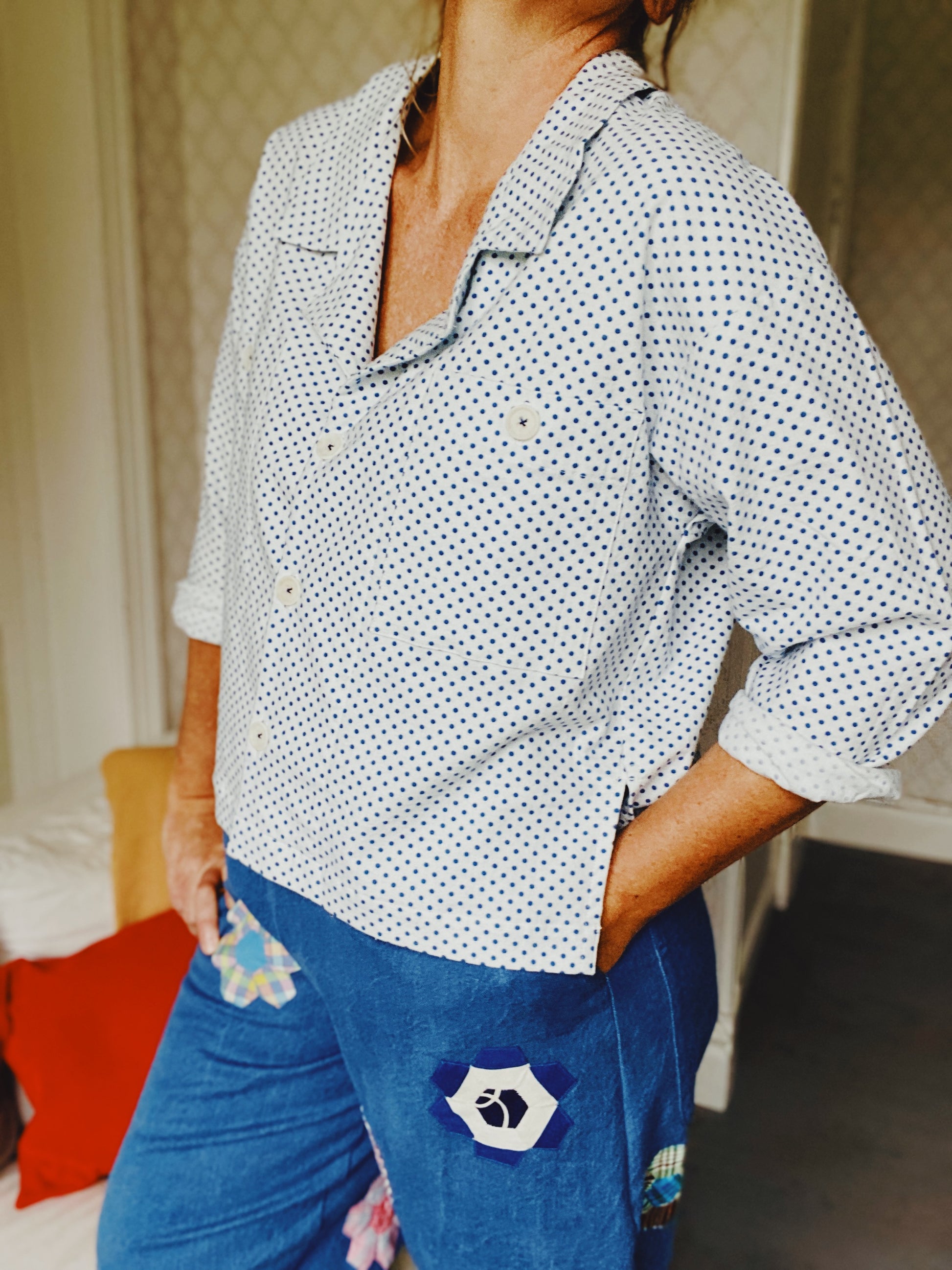 An Entropie classic by now, the Anna blouse combines a boxy fit with an elegant lapel collar. This season they are made of midweight vintage cottons and a structured cotton lace, that make them even more versatile to wear (as a blouse or as a jacket).